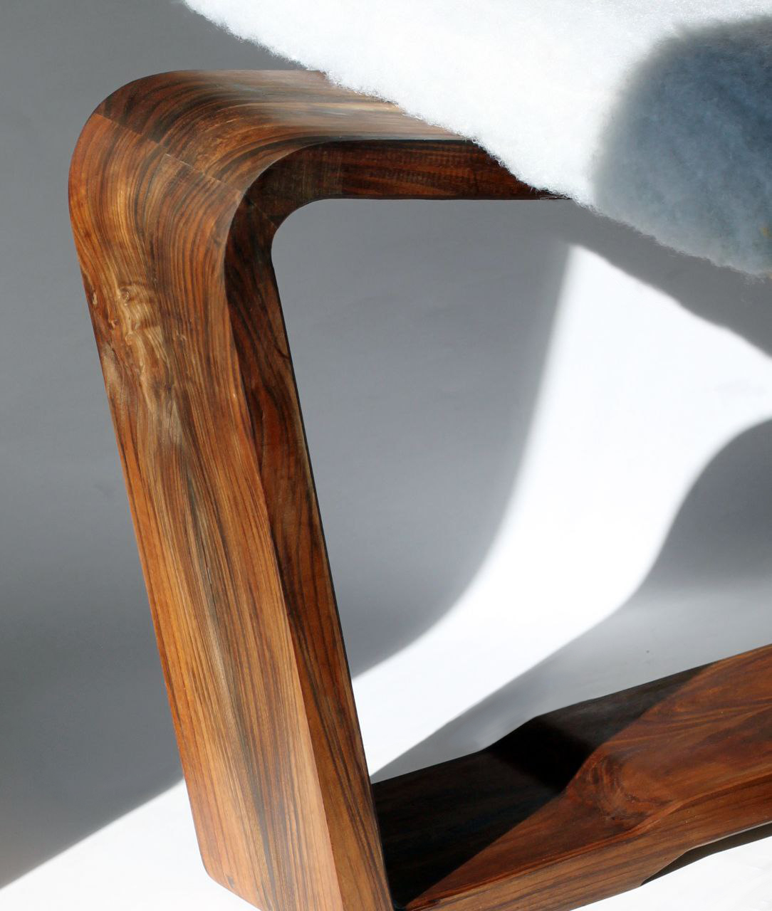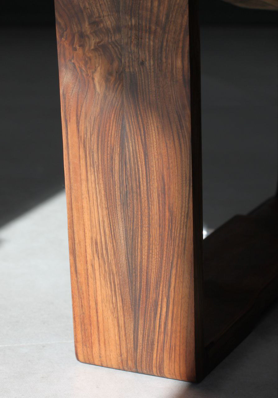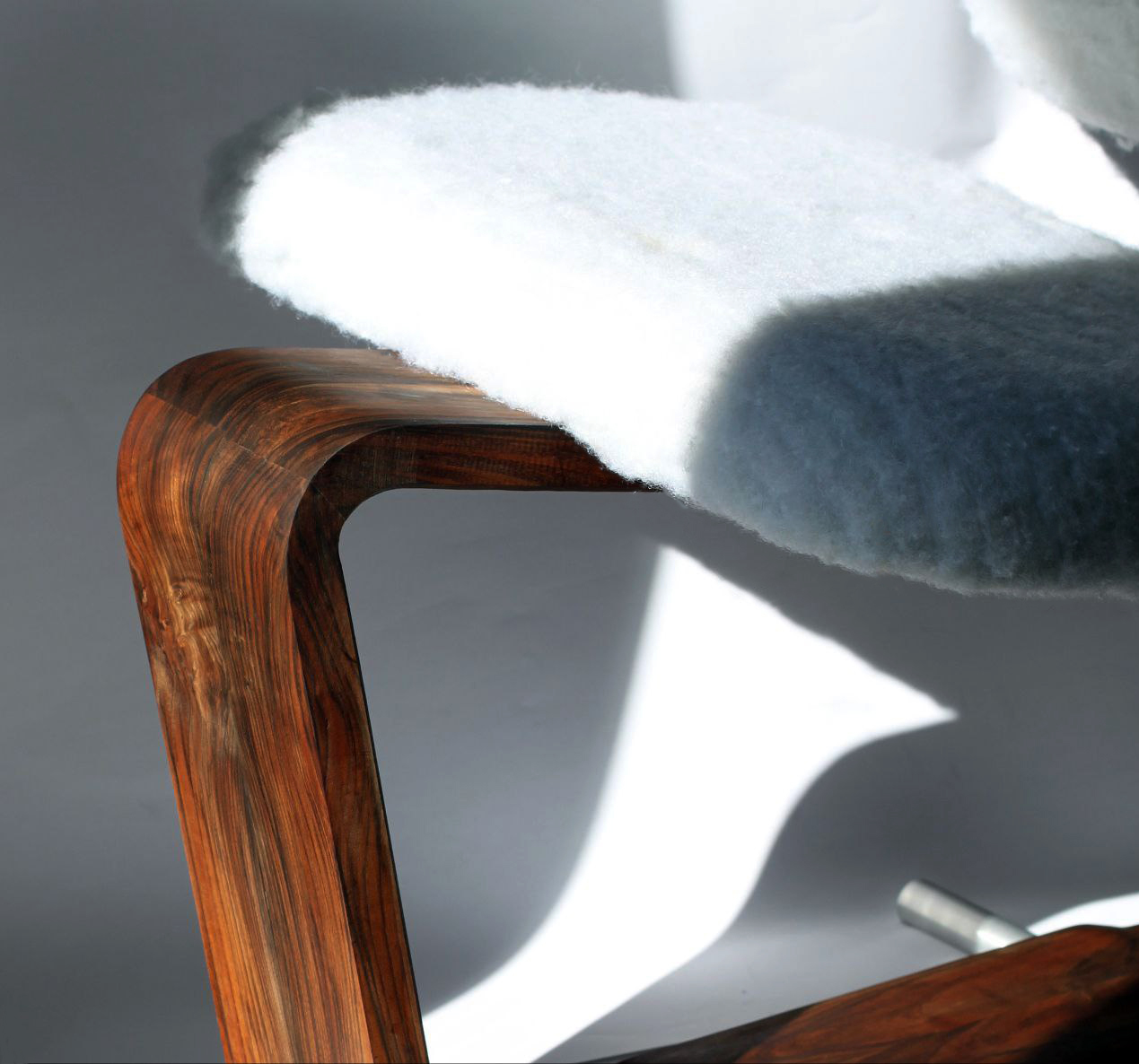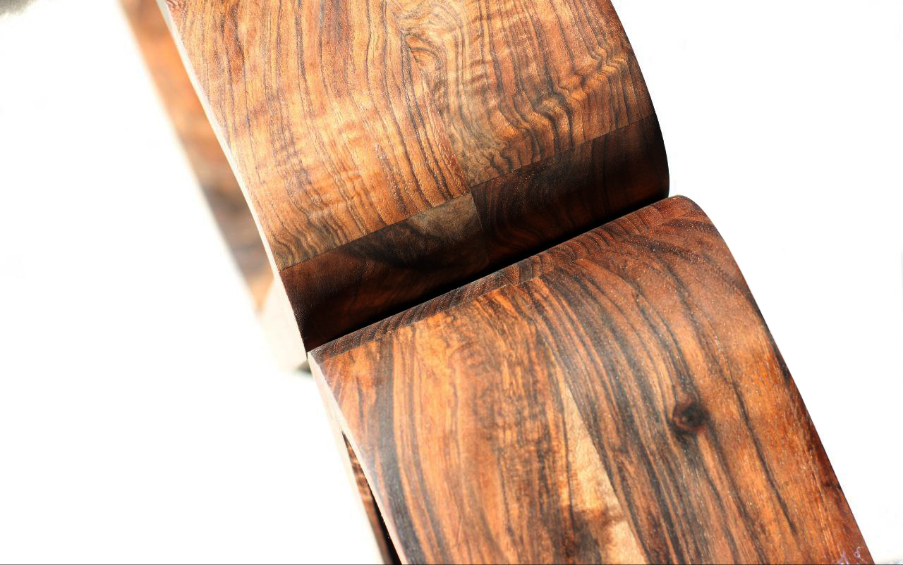 In the design of this chair, a mature response to the need for seating has been provided. The three-centimeter walnut frame moves fluidly and softly, seeking to honor the body's form and align with it. This smooth motion of the frame, when needed, creates a gap through which a three-centimeter aluminum rod passes, serving as a support. The interaction between wood and metal, like a precise symbiosis, creates balance and comfort. This chair is not just a tool for sitting, but each curve and line tells a story of balance and harmony.