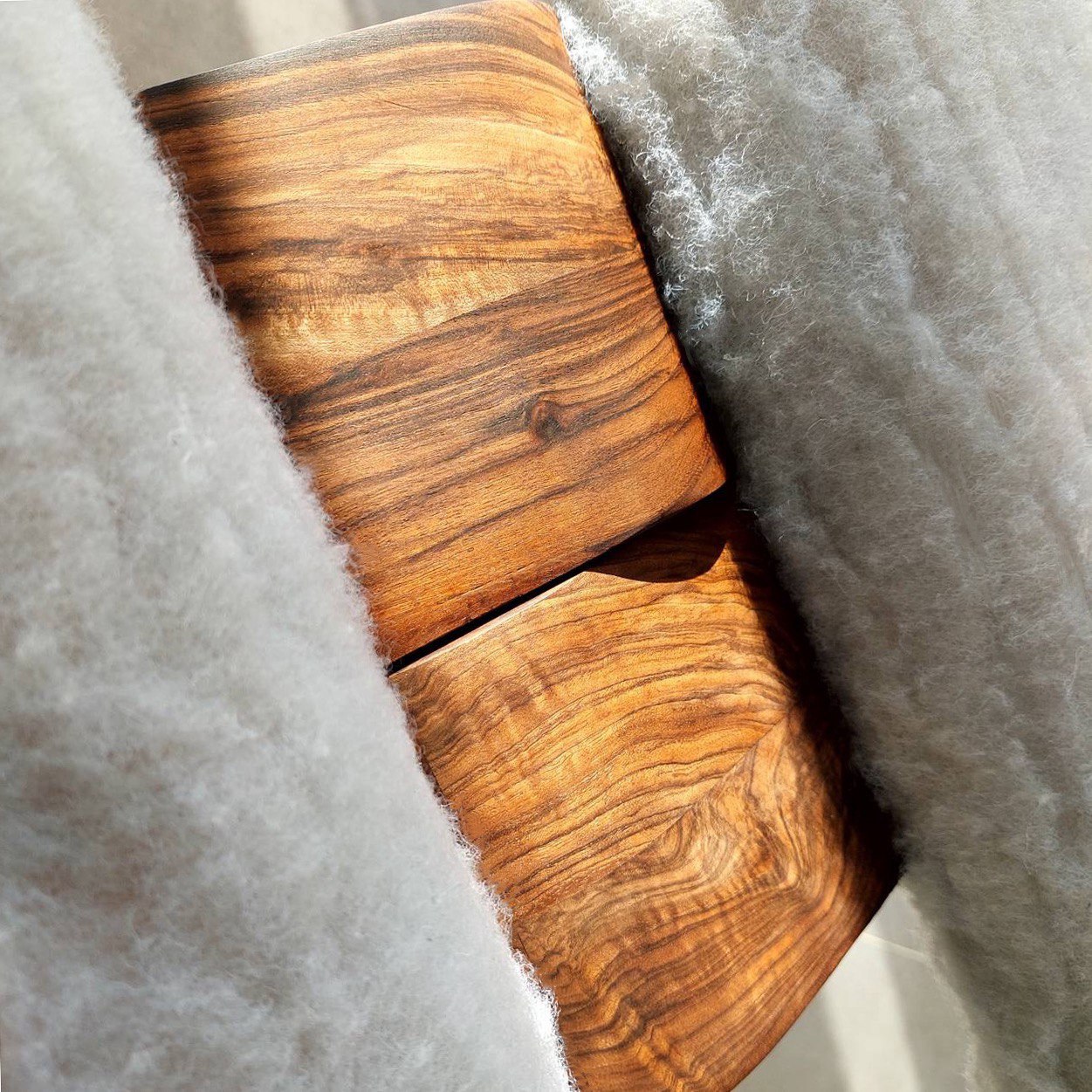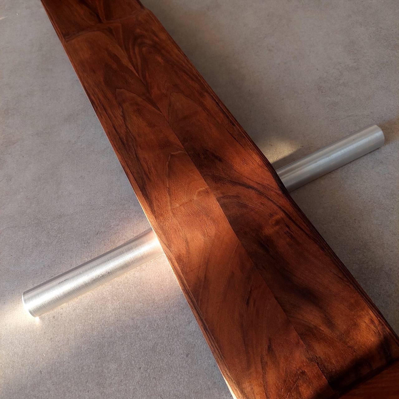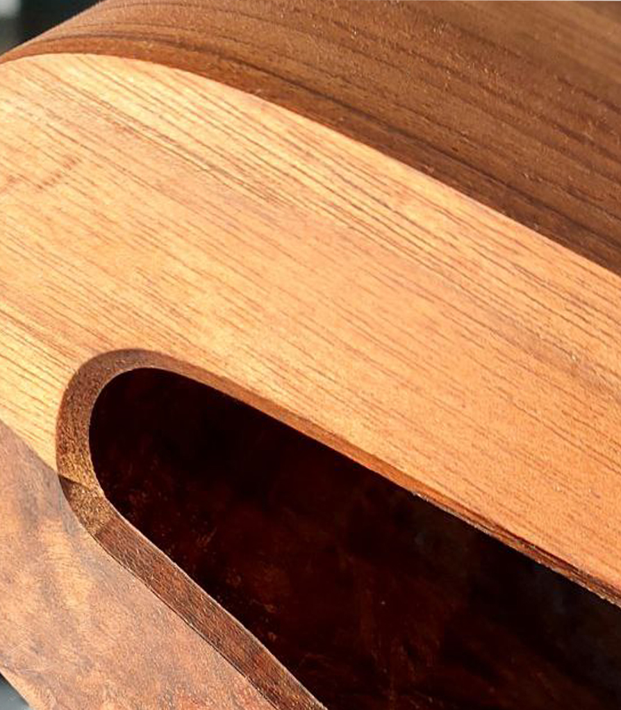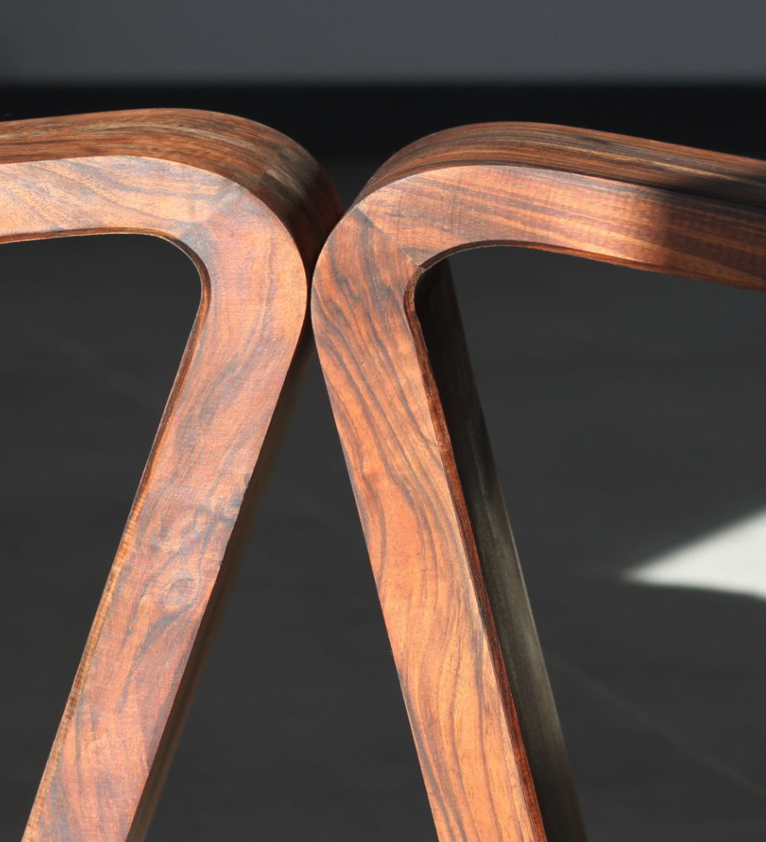 In the design of this chair, a mature response to the need for seating has been provided. The three-centimeter walnut frame moves fluidly and softly, seeking to honor the body's form and align with it. This smooth motion of the frame, when needed, creates a gap through which a three-centimeter aluminum rod passes, serving as a support. The interaction between wood and metal, like a precise symbiosis, creates balance and comfort. This chair is not just a tool for sitting, but each curve and line tells a story of balance and harmony.