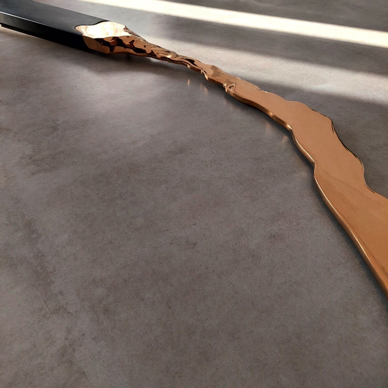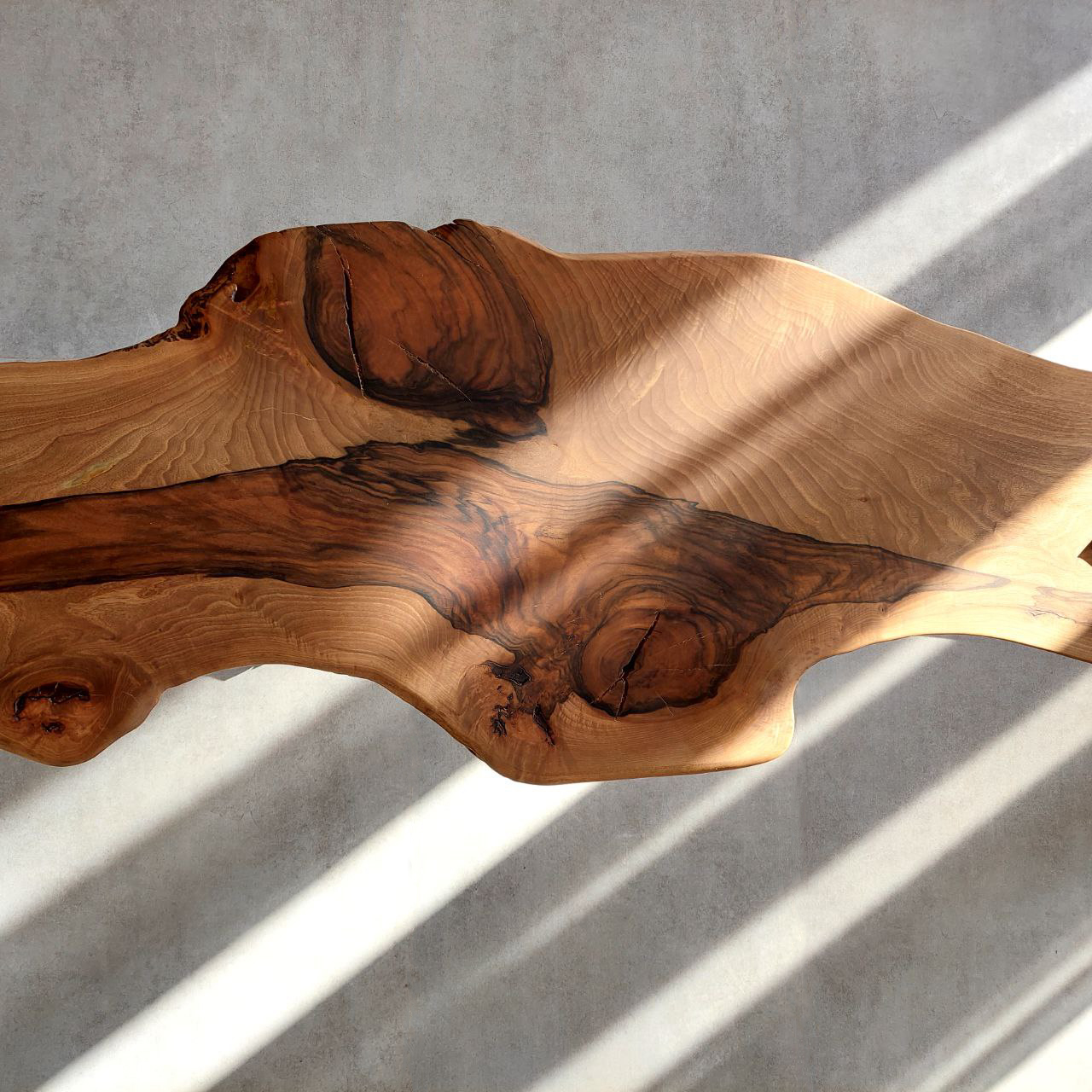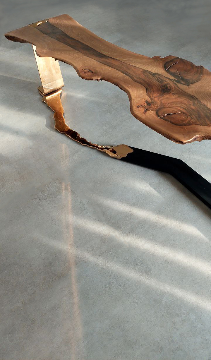 The "Siah Rud" (Means: Black River) bench is made from the wood of a tree aged 350 to 400 years. This tree, located by a river named Siah Rud, has witnessed the passage of water and time for years. The design of the bench is inspired by this continuous flow, with its fluid form cascading down like a waterfall, transitioning into a geometric and modern structure. The balance between functionality and form was designed and crafted for an art exhibition in 2020.